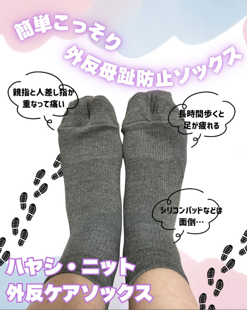 そんなお悩みを軽減してくれる救世主!!それがハヤシニットの外反母趾対策ソックスです✨