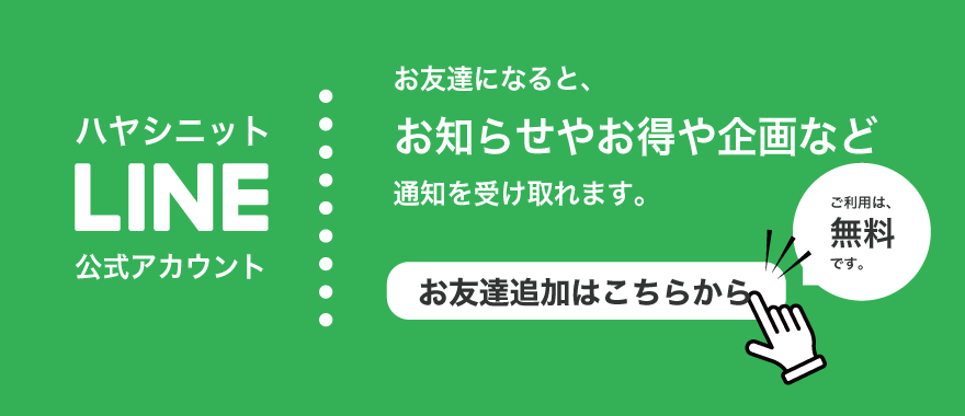 是非、この機会にハヤシニットのLINE友達をご活用くださいませ。