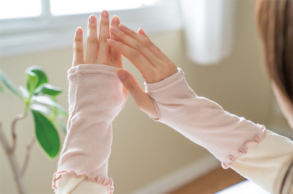 手の甲から手首まで優しく温めることで、指先までじんわりポカポカ。
