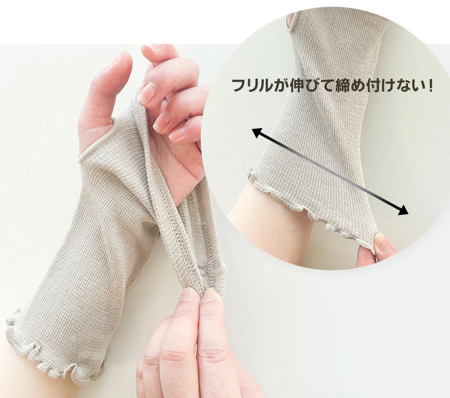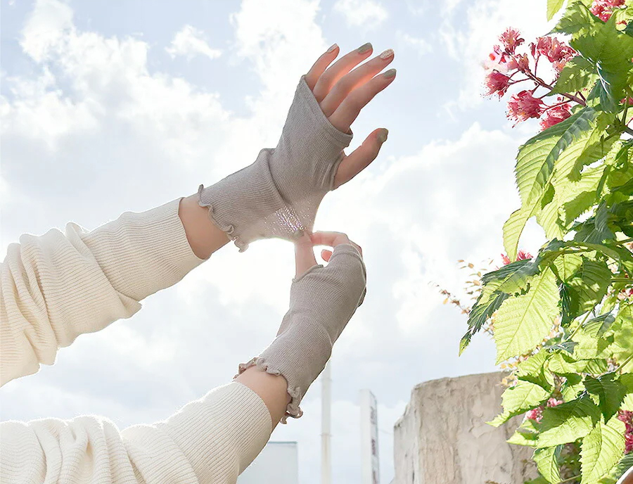 日差しが気になる際の外出や、窓際で過ごす時間が長いオフィスワークでも、手首や腕をしっかりガード。肌の乾燥や日焼けによるダメージを防ぎます☀️