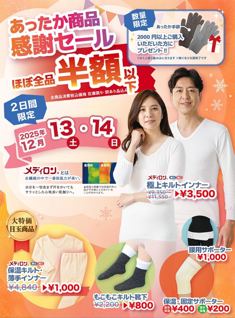 イベント当日2,000円以上お買い上げの方にはあったか手袋をプレゼントします!