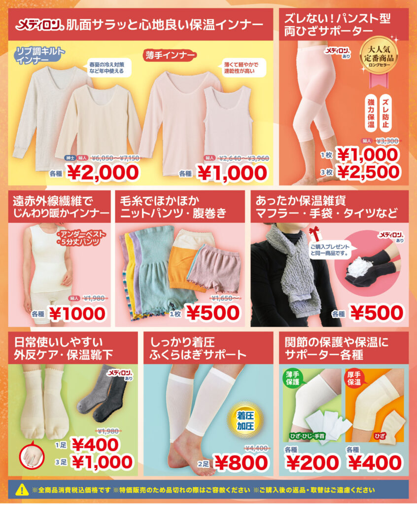 毎年人気のあったか肌着シリーズが、売り出し価格でかなり安いお値段になってます。